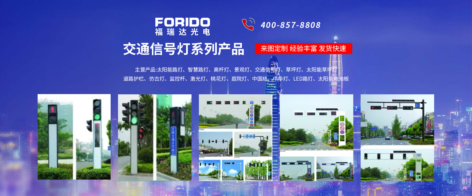 揚(yáng)州福瑞達(dá)光電科技有限公司位于淮左名都?xì)v史文化名城、中國路燈制造基地?fù)P州市北郊菱塘工業(yè)園,公司占地面積76000平方米,注冊資金10518萬元,擁有高級技術(shù)嫻熟的員工280多人,擁有大型折彎機(jī)、激光切割、數(shù)控注塑機(jī)、壓鑄機(jī)、自動埋弧焊、氣焊、彩色粉末靜電噴塑等大型自動化設(shè)備,我公司是一家集設(shè)計(jì)、研發(fā)、生產(chǎn)、銷售、施工安裝服務(wù)為一體的戶外交通照明產(chǎn)品制造商,主要生產(chǎn)智慧路燈、太陽能路燈、LED路燈、高桿燈、景觀燈、交通信號燈、交通標(biāo)志牌、通信鐵塔、路跨鋼結(jié)構(gòu)、公交站臺、太陽能光伏組件、景點(diǎn)亮化、樓宇亮化工程的設(shè)計(jì)施工等。公司秉承開拓創(chuàng)新、銳意進(jìn)取、精誠服務(wù)的企業(yè)精神,堅(jiān)持以“誠信為本、技術(shù)為先、服務(wù)是金”的合作理念,我們憑借先進(jìn)的制造工藝、優(yōu)質(zhì)的產(chǎn)品質(zhì)量、合理的市場價格和完善的售后服務(wù)贏得了廣闊的市場和客戶的信賴?! ∥夜疽淹ㄟ^ISO9001質(zhì)量體系認(rèn)證、ISO14001環(huán)境管理體認(rèn)證,CQC產(chǎn)品認(rèn)證,中國節(jié)能產(chǎn)品認(rèn)證,通過“CCC”強(qiáng)制性產(chǎn)品認(rèn)證,具有市政總承包,照明,交安,設(shè)計(jì)等資質(zhì)···